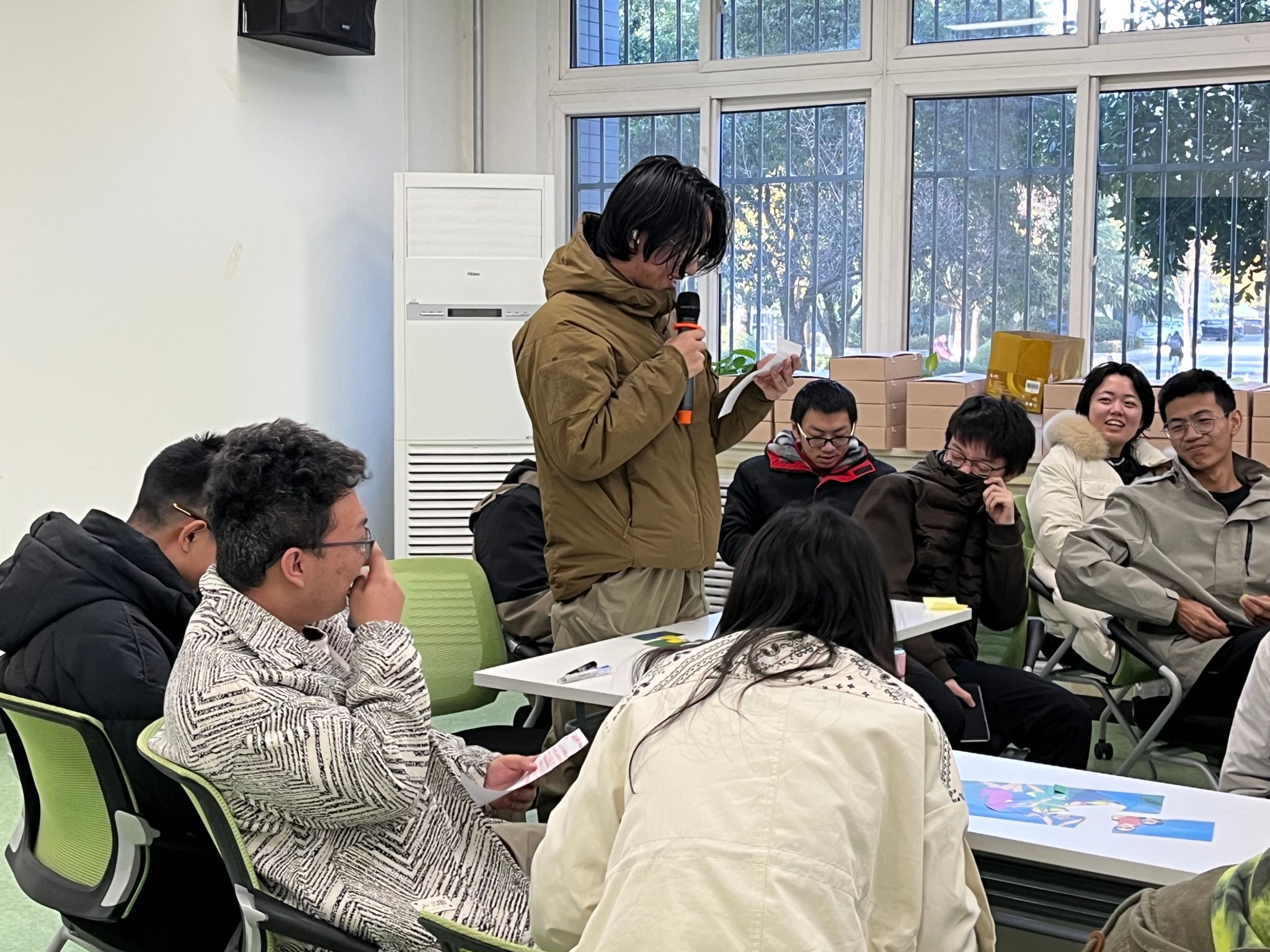 在最后的讨论分享环节,同学们踊跃发言。班级学习委员时同学说:“本次“团队心灵奇旅”团体活动,我认为推动了班里的同学从陌生走向熟悉、从个体凝聚为集体。开场的名字游戏打破隔阂,大家记住了彼此名字,交流背后的故事与期盼,形成初步的真诚与接纳。“故事接龙”环节中,大家的想法自由交流、创意被串联,形成完整成果,体现包容与整合个体贡献的价值。活动使我明确倾听、沟通与信任的重要性。我们不再孤立,通过理解与协作成为更默契的整体,为后续合作提供方向与底气。”杨同学说:“这次团队心灵之旅活动设计了如“拼图找队友”“OH卡介绍”“真人扫雷”等环节,巧妙的拉进了陌生同学间的距离。这次活动最重要的是给了我们一个交流的机会,平常除了上课大家都很少有聚在一起的机会。一开始的时候很多人对同班同学的名字都还不知道,在几轮游戏结束后都基本认识了。我也和几位只知道名字的同学更加熟悉了,也和本就熟悉的同学更熟悉了,在后面写作和排序环节中,我们也更加了解了对方的一些爱好等信息。最后的创作环节我们小组一起交流想法,写了一个有意思的故事,每个人都参与进去,大家合作的故事也让整个班级都笑了起来。更巧的是有一位同学过生日,我们大家都为他送上了祝福。总之大家都很开心,除了有些困,都觉得这个活动很不错。我也学习到了一个真正调动大家的活动应该是怎样的。”